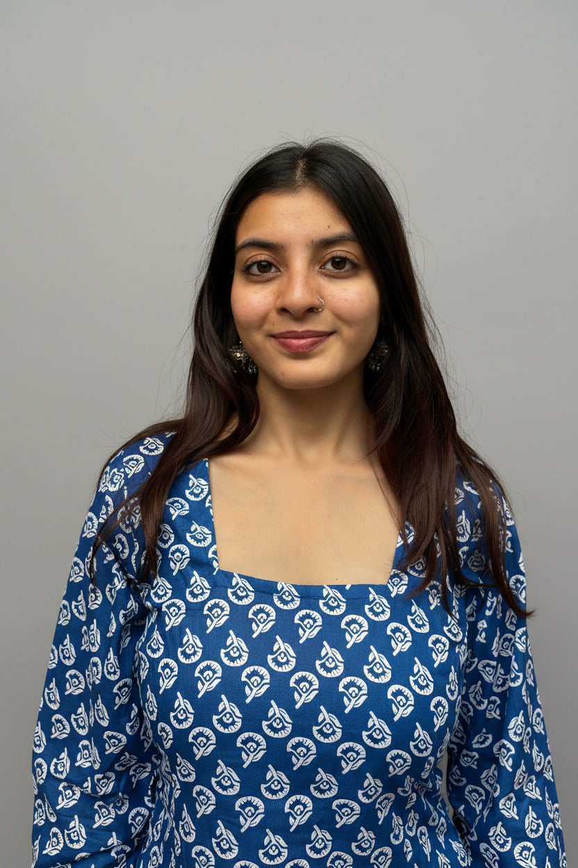 Trisha - Indigo Motif Sleeved Kurti